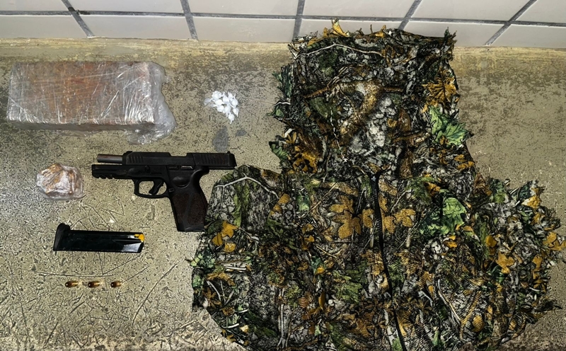Com o suspeito, os policiais apreenderam uma pistola calibre 9 milímetros, munições, roupas camufladas e drogas, incluindo crack, cocaína e maconha. Segundo a Polícia Militar, o homem tem antecedentes por tráfico de drogas e já foi preso em 2025 por tentativa de homicídio.